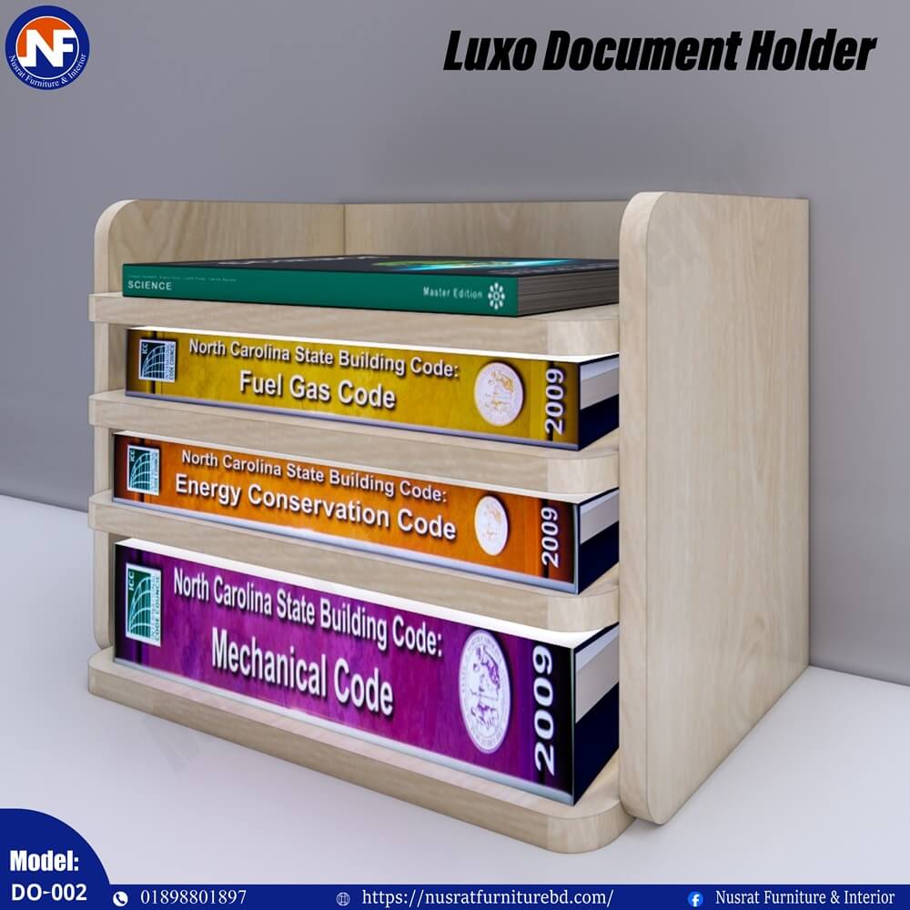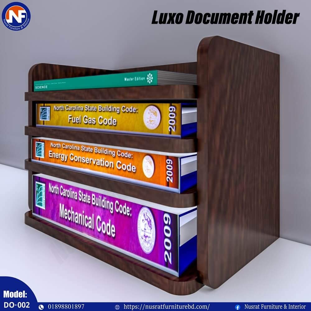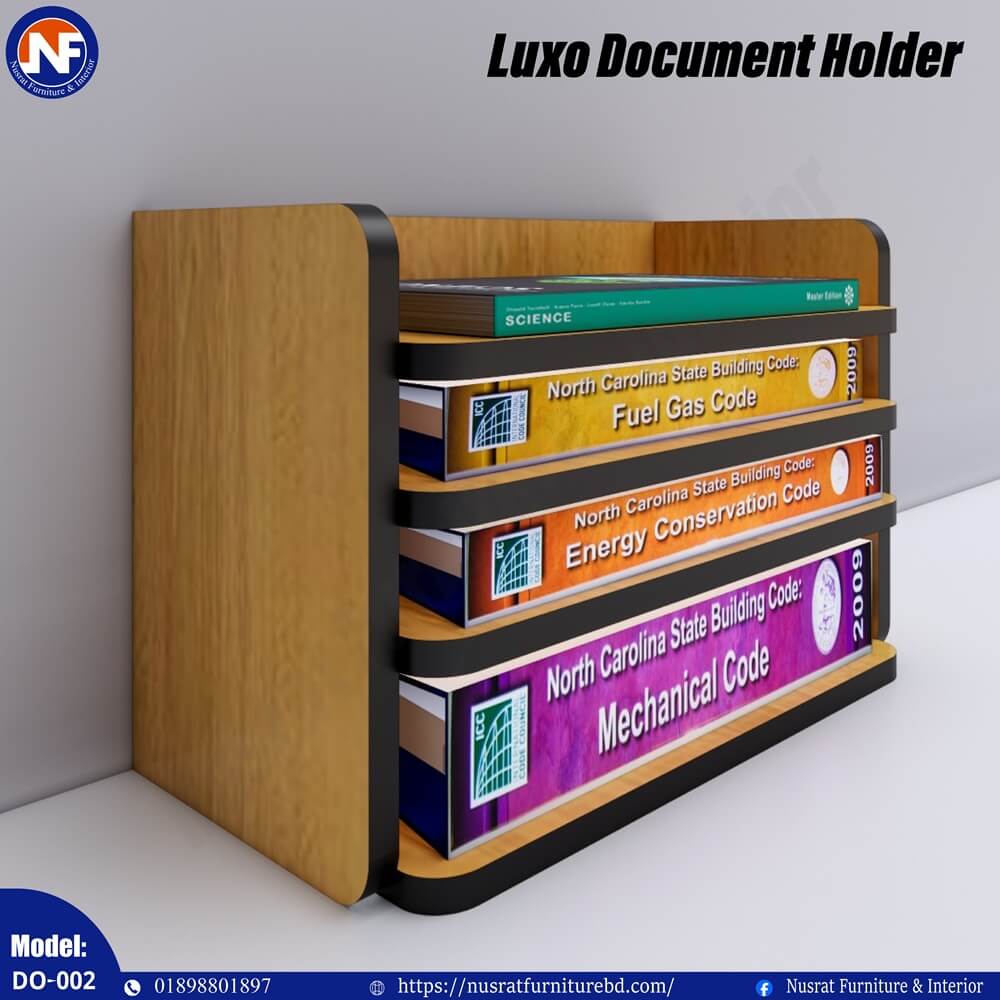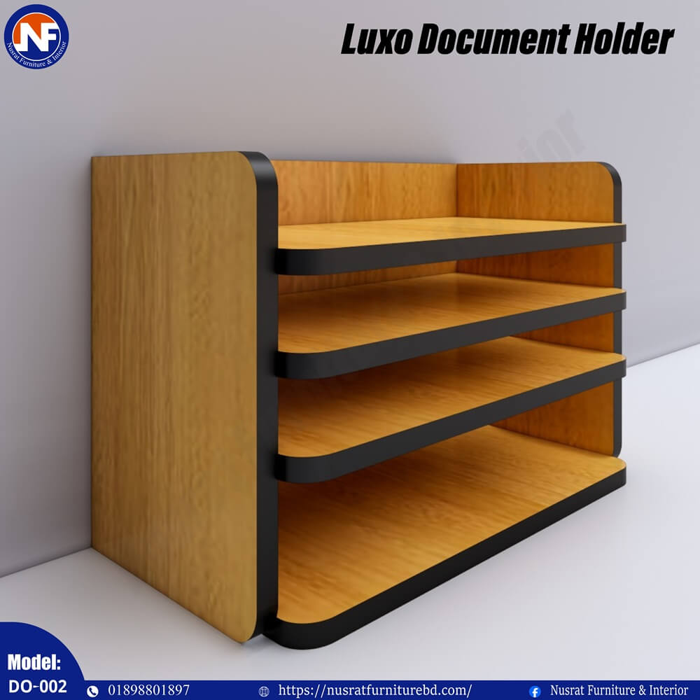 The DO-002 Luxo Document Holder is a sleek and practical desk organizer designed to keep important documents, files, and books neatly arranged. With dimensions of 16″ (L) × 10″ (D) × 12″ (H), it offers efficient storage while maintaining a compact footprint, making it ideal for desks with limited space.